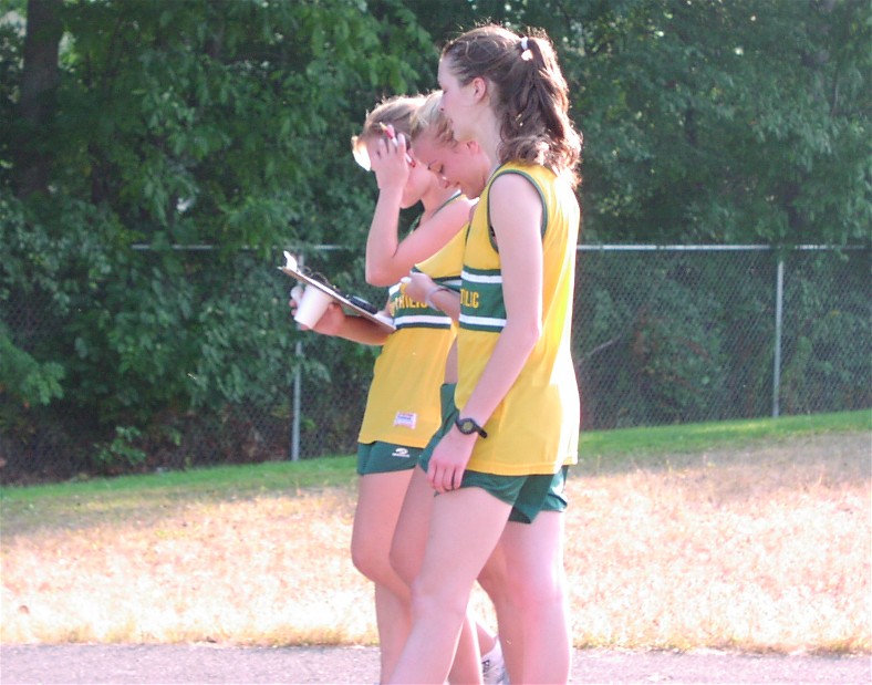 (Lauren and Kristen, with Diana, Sarah and Emma trailing, in the race with Frontier)